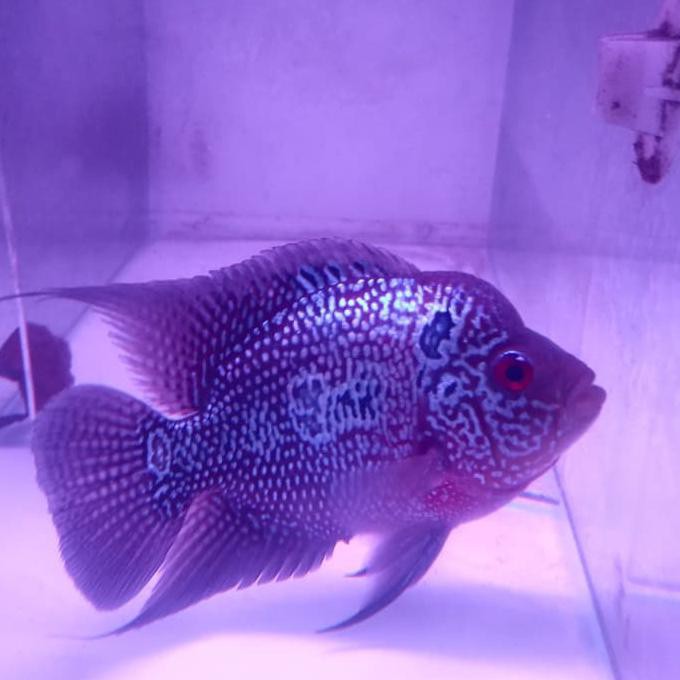 Ikan louhan super red synspillum ini memiliki warna merah cerah dari kepala sampai ekor.